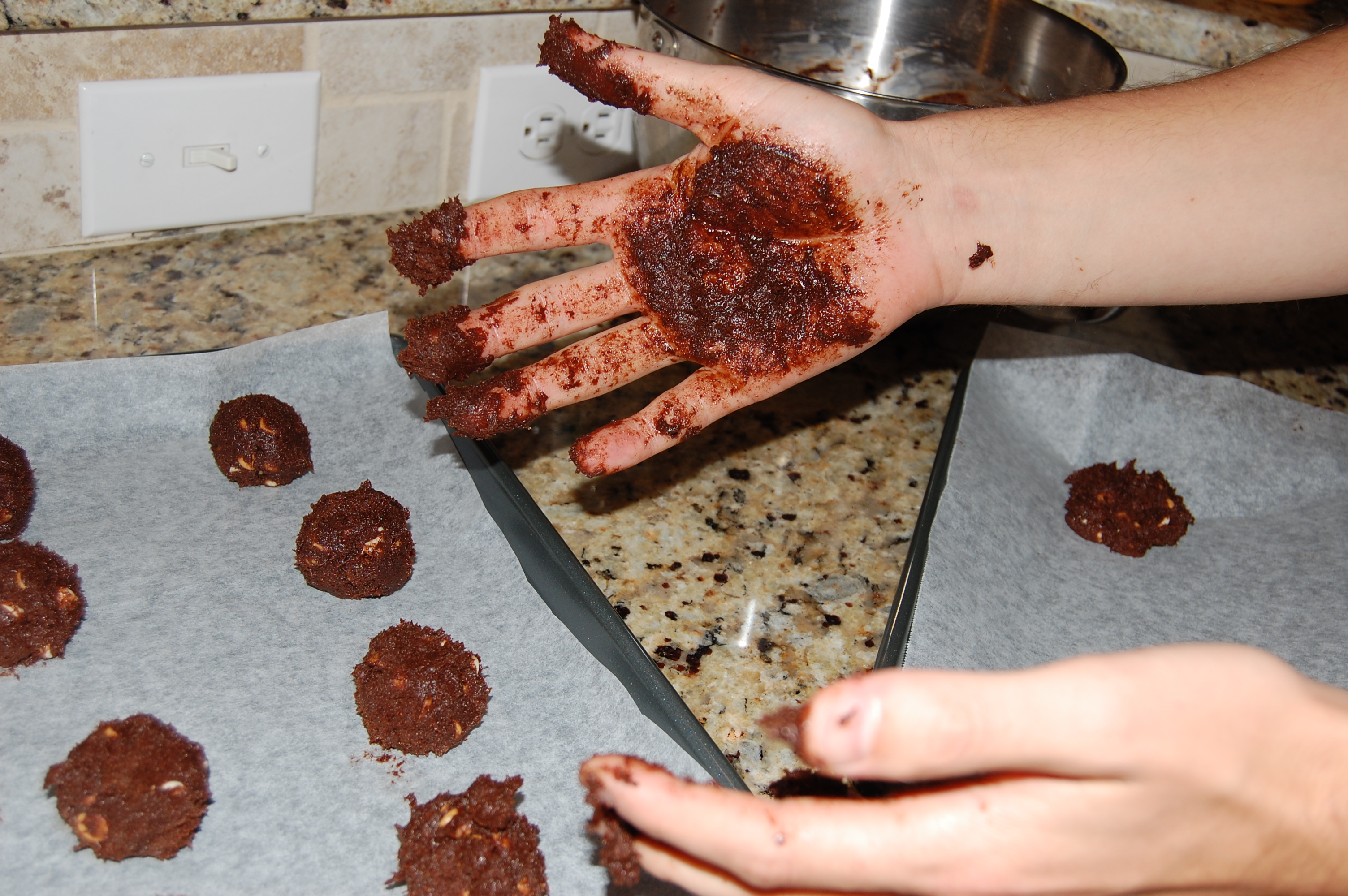 So sticky in fact that if you ask your boyfriend to help you form the dough balls, his hands will end up looking like this and he will be just a tiny bit annoyed.
