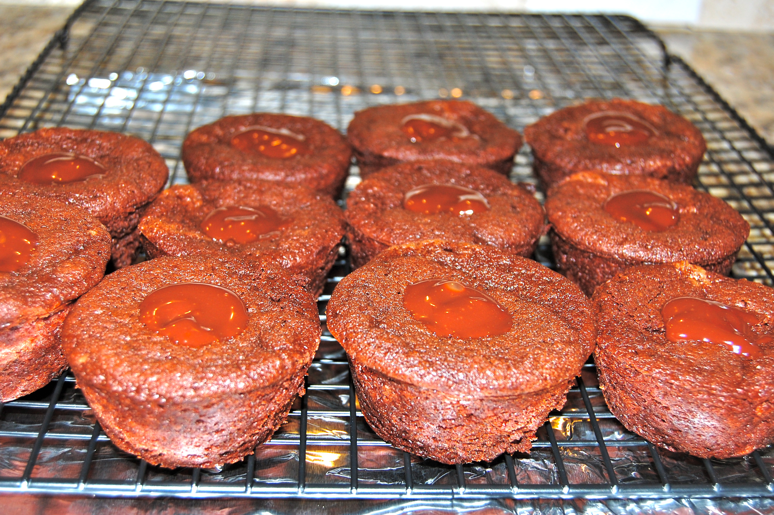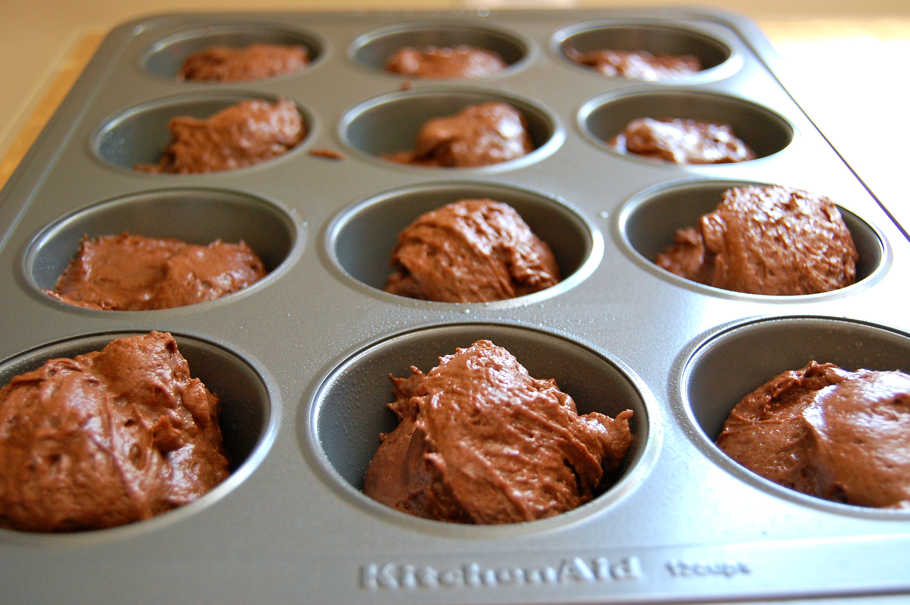 The batter was really thick. Chocolate mousse-ish. Also, you’ll notice that these don’t have cupcake liners. Full disclosure, this was not an intentional, stylistic thing. I just didn’t realize I only had four cupcake liners left in my cabinet. These would have been a lot less nerve-wracking with liners.