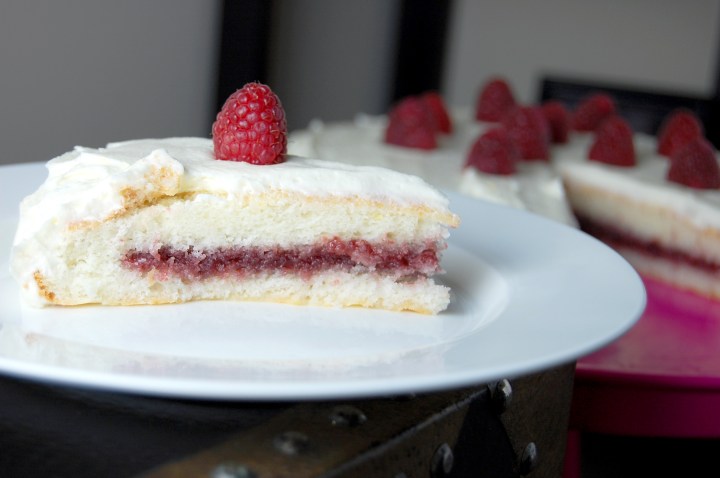 The cake is springy (and Spring-y), but still able to hold up to the raspberry preserves in the center and a thick covering of the lemon buttercream. It’s not overwhelmingly fruity at all, it just tastes fresh and light. It made me want a mimosa and a tan.